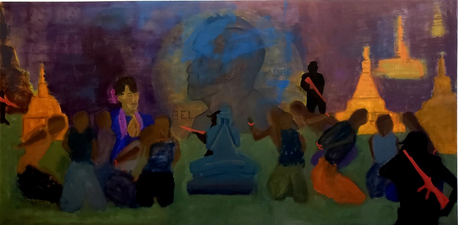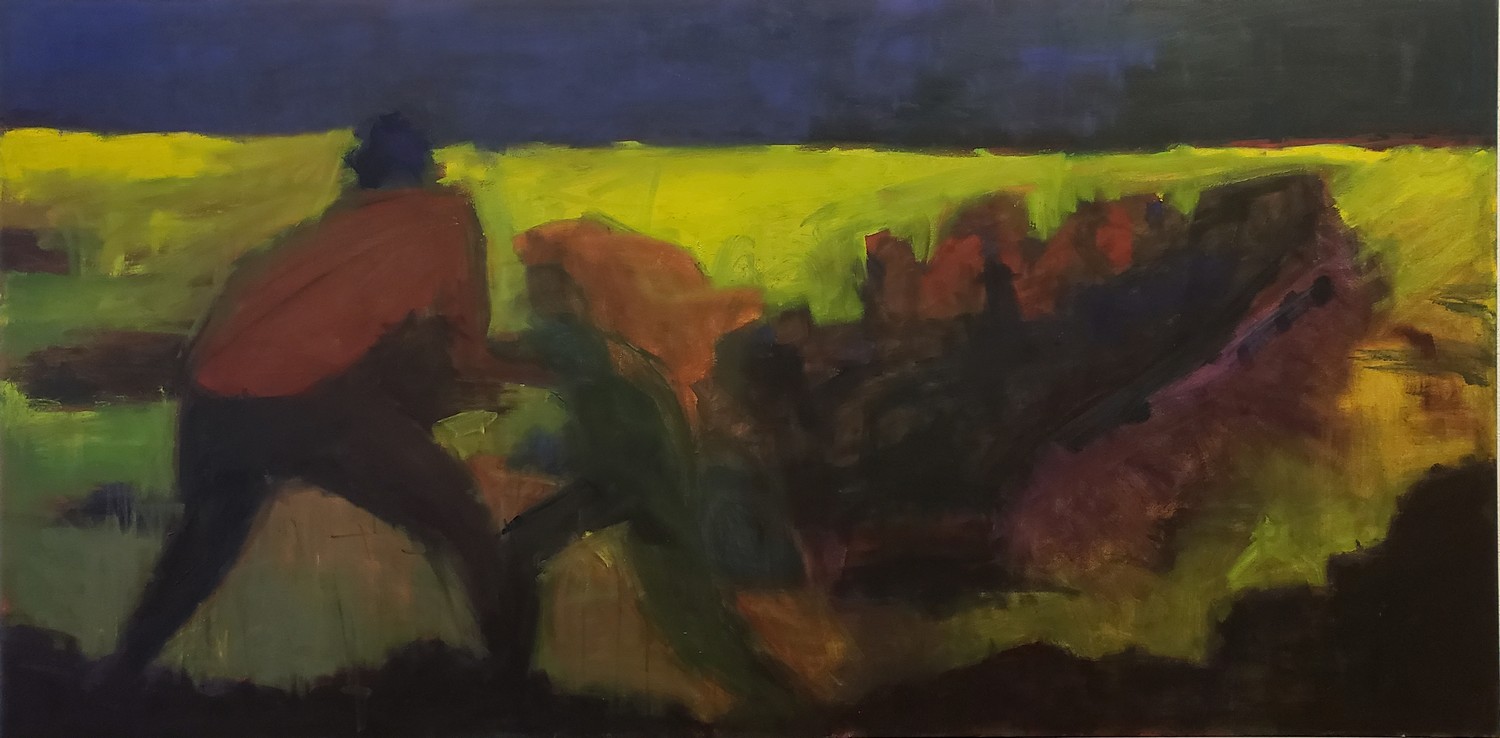 2018, oil and acrylic on canvas, 36 x 72 inches